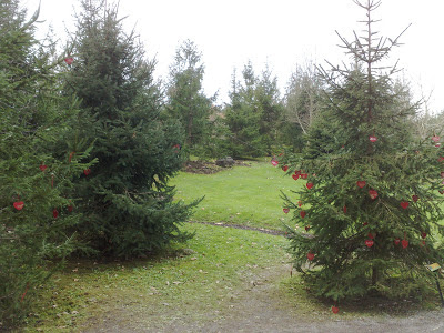 (Ésta última foto son los abetos que los niños han decorado con corazoncitos de deseos para el nuevo año)